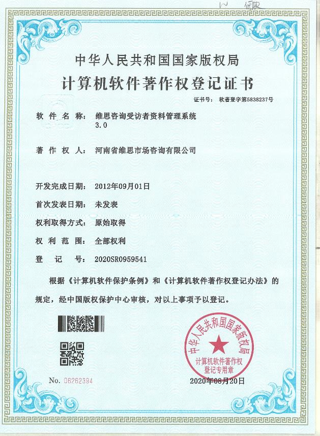 7. 维思咨询神秘访客调查管理系统登记证书