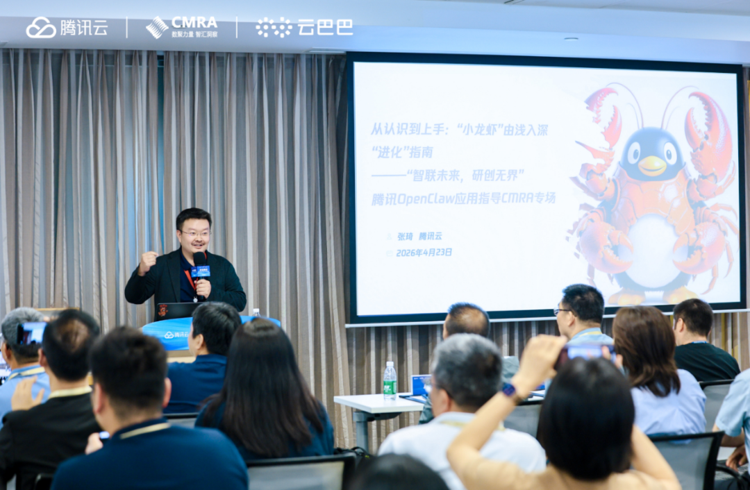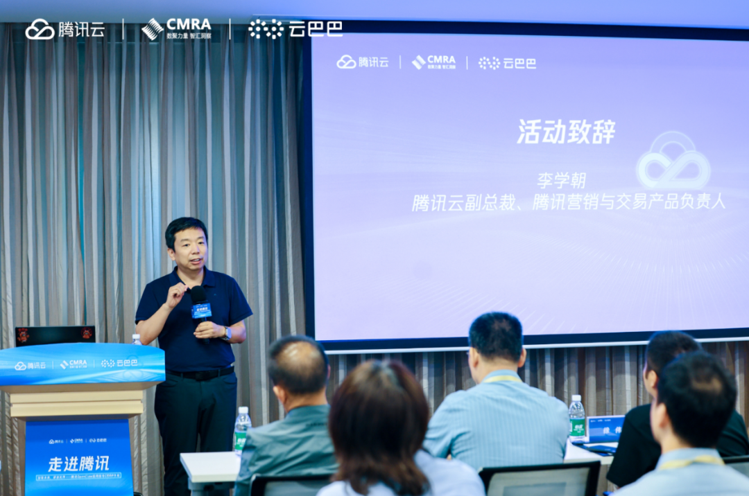 参观环节结束后,“腾讯OpenClaw应用指导CMRA专场正式拉开帷幕。腾讯云副总裁、腾讯营销与交易产品负责人李学朝先生率先登台致辞。他强调,面对新一轮的科技浪潮,腾讯正致力于将前沿的科技创新,特别是日新月异的AI技术,转化为切实可用的产品能力,以此来深度赋能千行百业的发展。腾讯云期待与市场研究行业展开更深层次的跨界融合与深度合作,依托云巴巴等生态伙伴的链接,共同挖掘数据背后的无限商业价值。